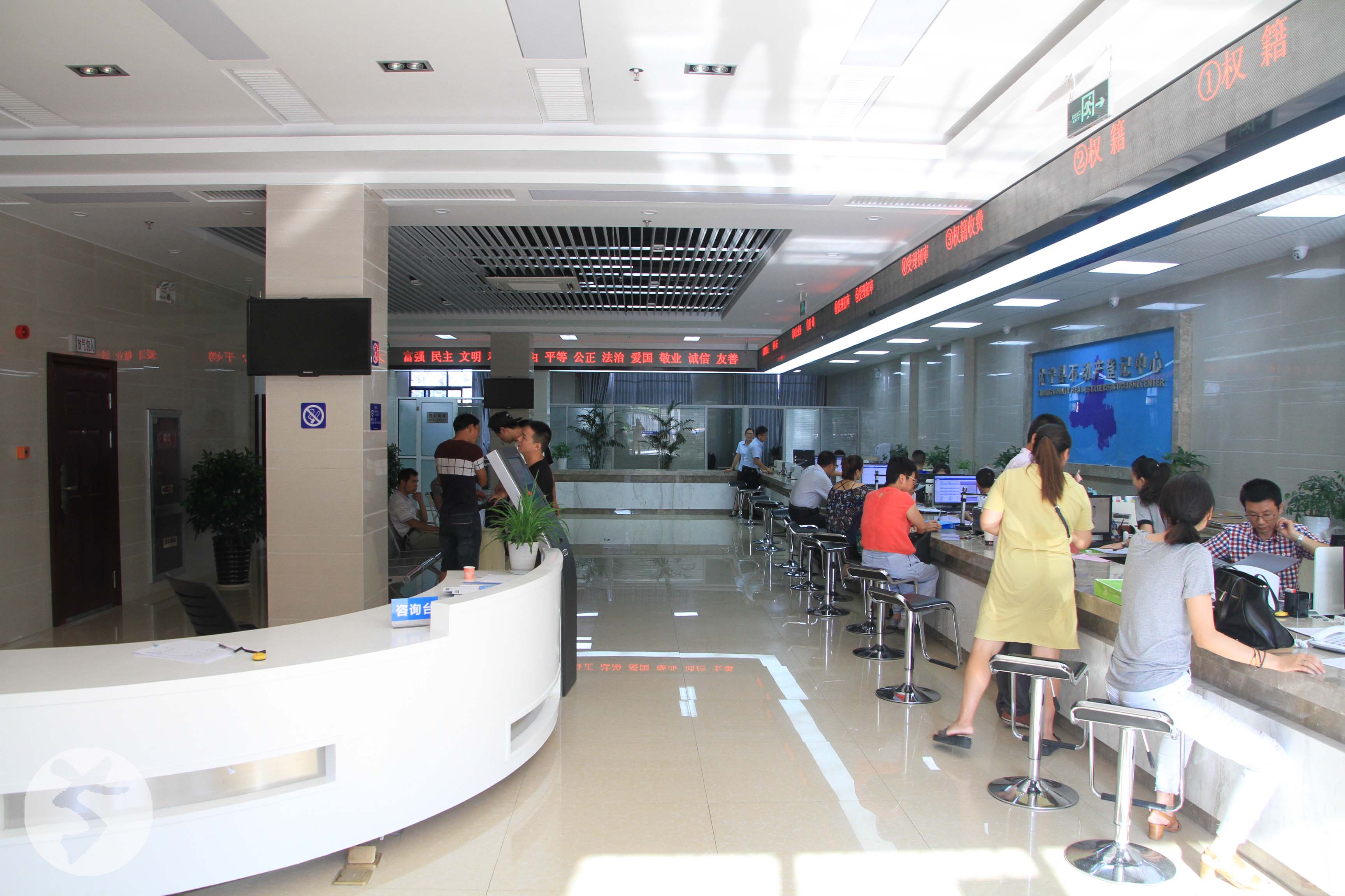 休寧縣國土資源局不動(dòng)產(chǎn)登記中心大廳裝修工程,竣工于2016年10月;